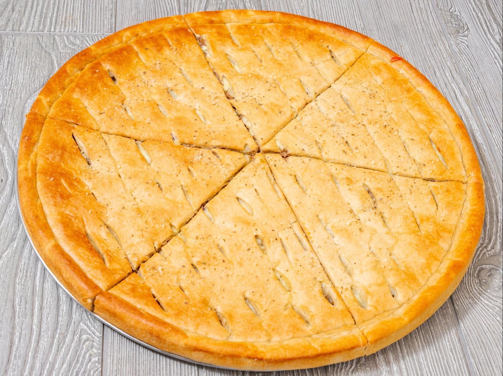 Pepperoni, sausage, mushrooms, onions, bell peppers, tomato sauce & mozzarella cheese.