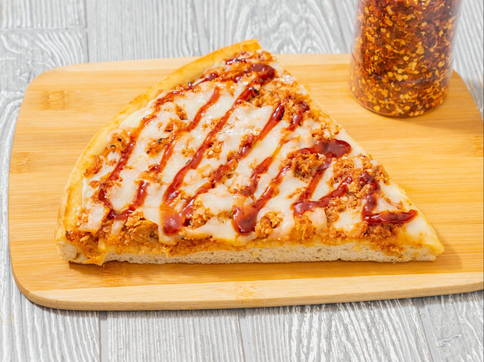 Chicken, BBQ sauce & mozzarella cheese.